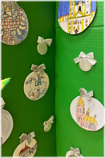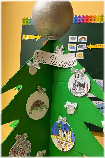 Vánoční trhy v našem městě jsou spojeny se slavnostním rozsvícením vánočního stromu na Horním náměstí. Na této akci jsou vyhlašovány výsledky výtvarné soutěže, kterou organizuje MM Olomouce. Do soutěže se i letos zapojila všechna oddělení ŠD. Výsledkem společné intenzivní práce byl vánoční strom vyzdobený množstvím baněk, které zobrazují významné pamětihodnosti města. Nejdříve poputuje naše PERLA OLOMOUCE do soutěže a následně se stane součástí tradiční školní vánoční výstavky.