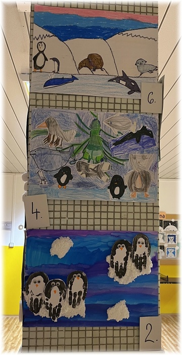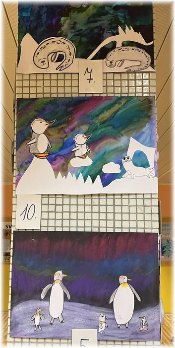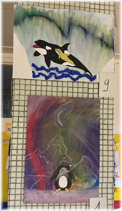 Antarktida je nejchladnější místo na Zemi. Přesto zde žije mnoho zajímavých zvířat, která se dokázala přizpůsobit silnému mrazu, větru a ledu. Těm nejznámějším, jako jsou tučňáci, tuleni a velryby, jsme věnovali pozornost ve ŠD v posledním měsíci kalendářního roku. S Antarktidou je spojen ještě jeden nádherný přírodní úkaz zvaný polární záře. Vzniká tehdy, když částice ze Slunce narazí do zemské atmosféry. Obloha se pak rozzáří zelenými, fialovými nebo růžovými barvami, které vypadají jako kouzelný tanec světel. Tento úkaz se stal inspirací pro všechny účastníky naší výtvarné soutěže. Žáci v ní výtvarně ztvárnili jedinečnou krásu i tajemnou atmosféru zářící oblohy nad ledovou krajinou Antarktidy i se zvířaty, která zde žijí.