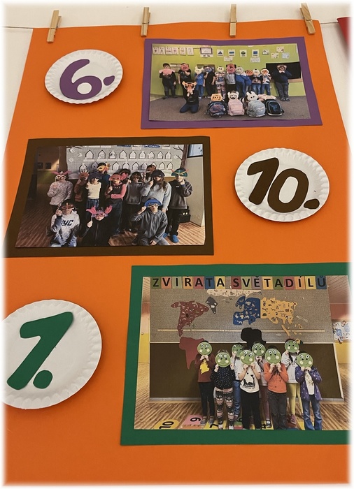Severní Amerika je rozlehlý kontinent s horami, lesy, jezery i nekonečnými pláněmi. Právě díky této rozmanité přírodě zde žije mnoho zajímavých zvířat. Mezi nejdůležitější a nejznámější patří především bizon americký, medvěd grizzly, los, orel bělohlavý, bobr severoamerický, mýval severní. Kde a jak tato zvířat žijí, čím se živí, co je pro ně typické, na to jsme společně hledali odpovědi ve ŠD v průběhu měsíce února. Na poznávání zvířat jsme navázali vlastní tvořivou činností - výrobou zvířecích masek. Vrcholem našeho putování po tomto kontinentu bylo zábavné soutěžní odpoledne s výstižným názvem V říši zvířat. Prostory ŠD se proměnily v malou severoamerickou divočinu plnou originálních zvířecích masek. Na památku tohoto veselého a zážitky nabitého odpoledne si každé oddělení vytvořilo svůj vlastní barevný banner s fotkou ve zvířecích maskách, který je součástí výzdoby prostory školní družiny.