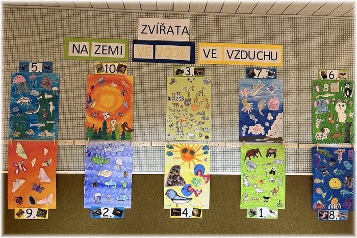 Tématem úvodní části byly tři základní živly – země, voda a vzduch. Společně tvoří rovnováhu a každý z nich je nepostradatelný i pro život zvířat. Země dává zvířatům domov a potravu. Voda jim poskytuje místo k životu, pití i očistu. Vzduch jim umožňuje dýchat a pohybovat se. Nejen těmito myšlenkami se žáci následně inspirovali ve výtvarné soutěži Zvířata na zemi, ve vodě, ve vzduchu. Svými povedenými výtvory, které zdobí jako tradičně prostory ŠD, vyjádřili nejen krásu a rozmanitost světa zvířat, ale i nezbytnost ochrany přírody, která jim dává prostor k životu.