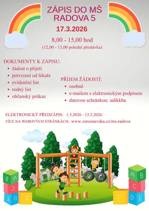 Úvod > MŠ Radova > Aktuality MŠ Radova > Zápis do MŠ Radova