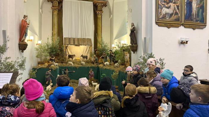 Třída 2. A dne 18. 12. navštívila kostel Zvěstování Panny Marie na Dolním náměstí, kde se děti dozvěděly zajímavosti o zrození Ježíška a prohlédly si největší betlém v Olomouci.