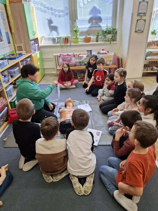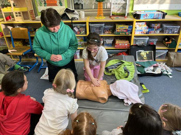 Dne 4. 3. se žáci 1. tříd zúčastnili programu o první pomoci. Děti se hravou formou dozvěděly, jak mohou pomoci druhým. Vyzkoušely si například stlačování hrudníku nebo obvazování zranění. Nechyběla zábava ani spousta nových a zajímavých informací. Prvňáčci si z celé přednášky odnesli důležité poučení - i když se něco stane, nejdůležitější je zachovat klid a nebát se pomoci.
