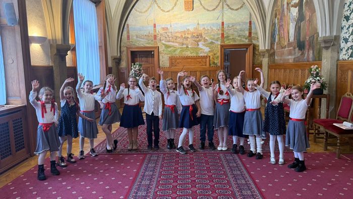 V sobotu 8. listopadu 2025 se vybraní žáci ze tříd 2. A a 4. A zúčastnili slavnostního vítání občánků města Olomouce, které se konalo v prostorách Magistrátu města. Pod vedením paní učitelky Šírové zde vystoupili jako pěvecký sbor naší školy, čímž potěšili všechny přítomné a také přispěli k příjemné atmosféře této slavnostní události.