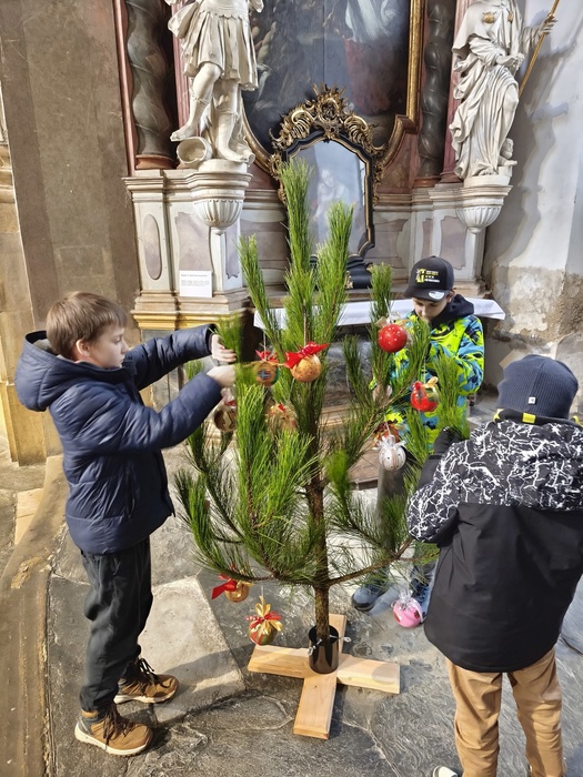 Dne 15. prosince žáci třídy 5. B zdobili vánoční stromeček v kostele Panny Marie Sněžné v Olomouci. Ozdoby si děti samy vyrobily a s radostí jimi stromeček nazdobily. Srdečně vás zveme k jeho prohlídce – stromeček bude k vidění do 6. ledna 2026.