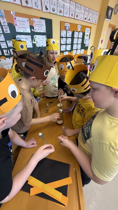 Žáci z 2. A měli projektový den na téma Život včel. Seznámili se s tím, jaké včely žijí v úlu, jaké mají během svého života úlohy a také se dozvěděli řadu zajímavostí o včelách. Vyrobili si knížku s informacemi, ochutnali domácí med od včelaře, vyrobili si včelí čelenku, naučili se písničku. Den byl úspěšný a děti si ho moc užily.