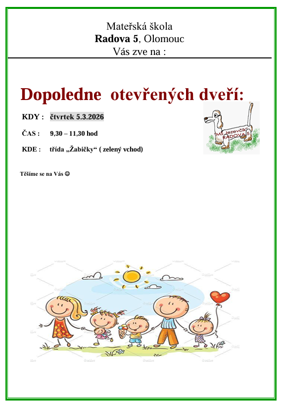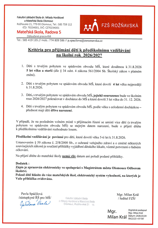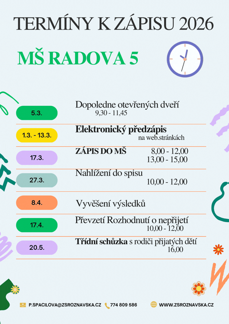 Na webu zde stačí vyhledat naší mateřskou školu, zaregistrovat se a předzapsat se do ní. Je také možno využít přímý odkaz na informační stránku naší mateřské školy: